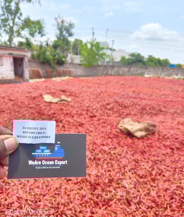 WEARE OCEAN EXPORT proudly offers authentic red dry chillies sourced directly from our own yard in Guntur, India's chilli capital. We supply a wide range of export and domestic varieties, with precise grading, cleaning, and processing to meet diverse buyer needs worldwide — from bulk spice importers to food processors and repackers.