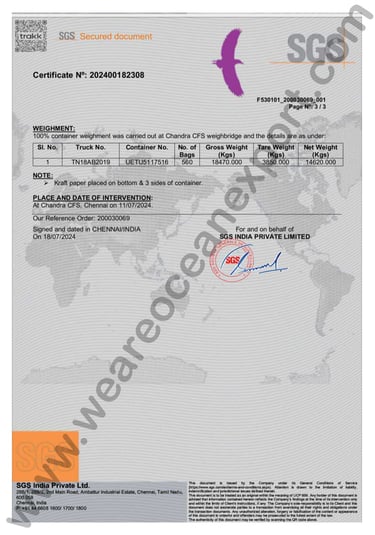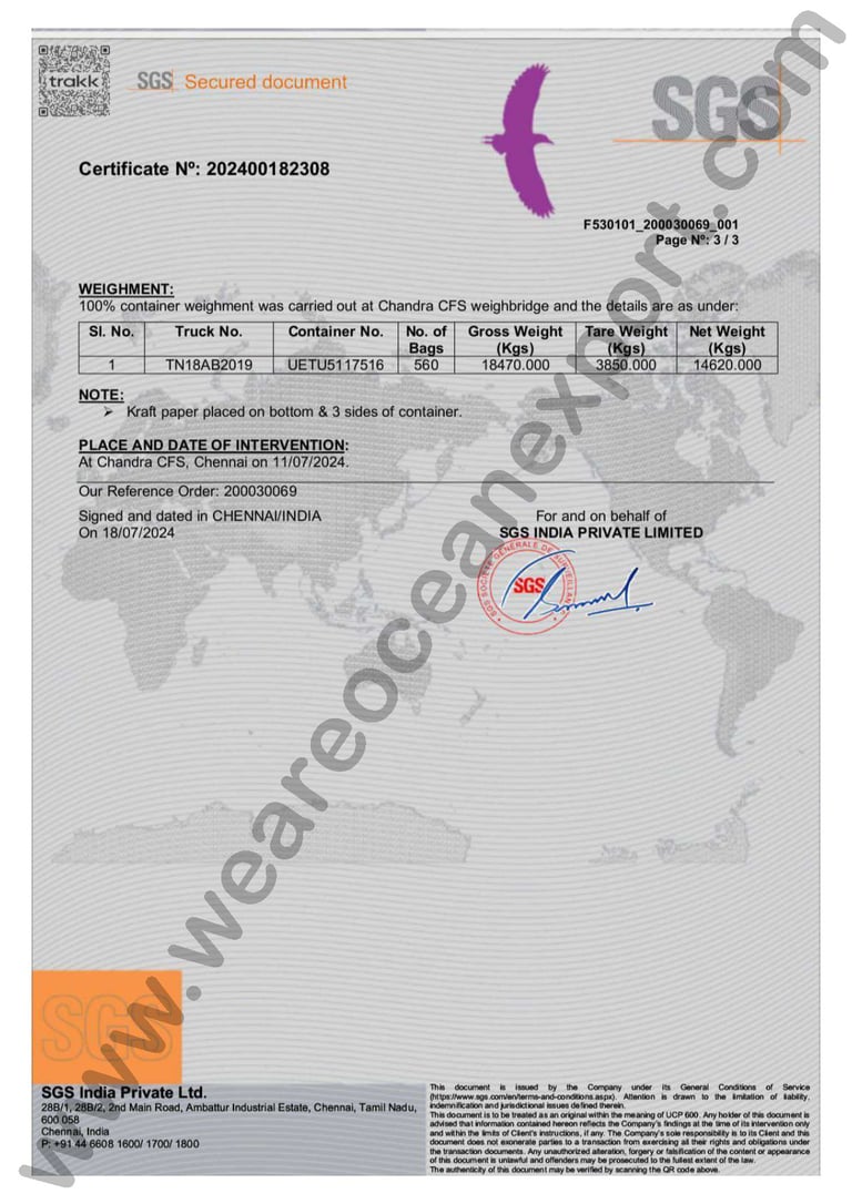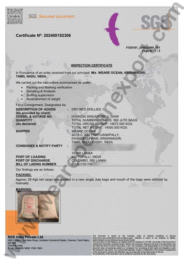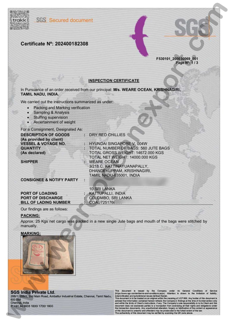 SGS-Certified Red Dry Chilli– Inspection Report, Chennai Port, Tamil Nadu