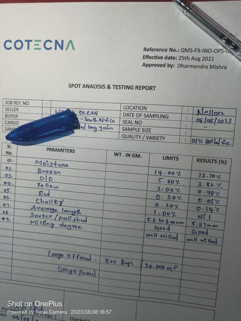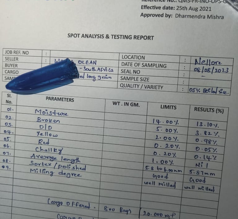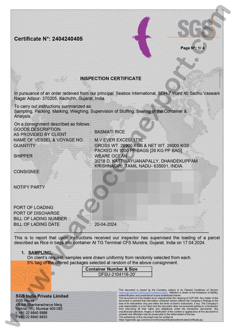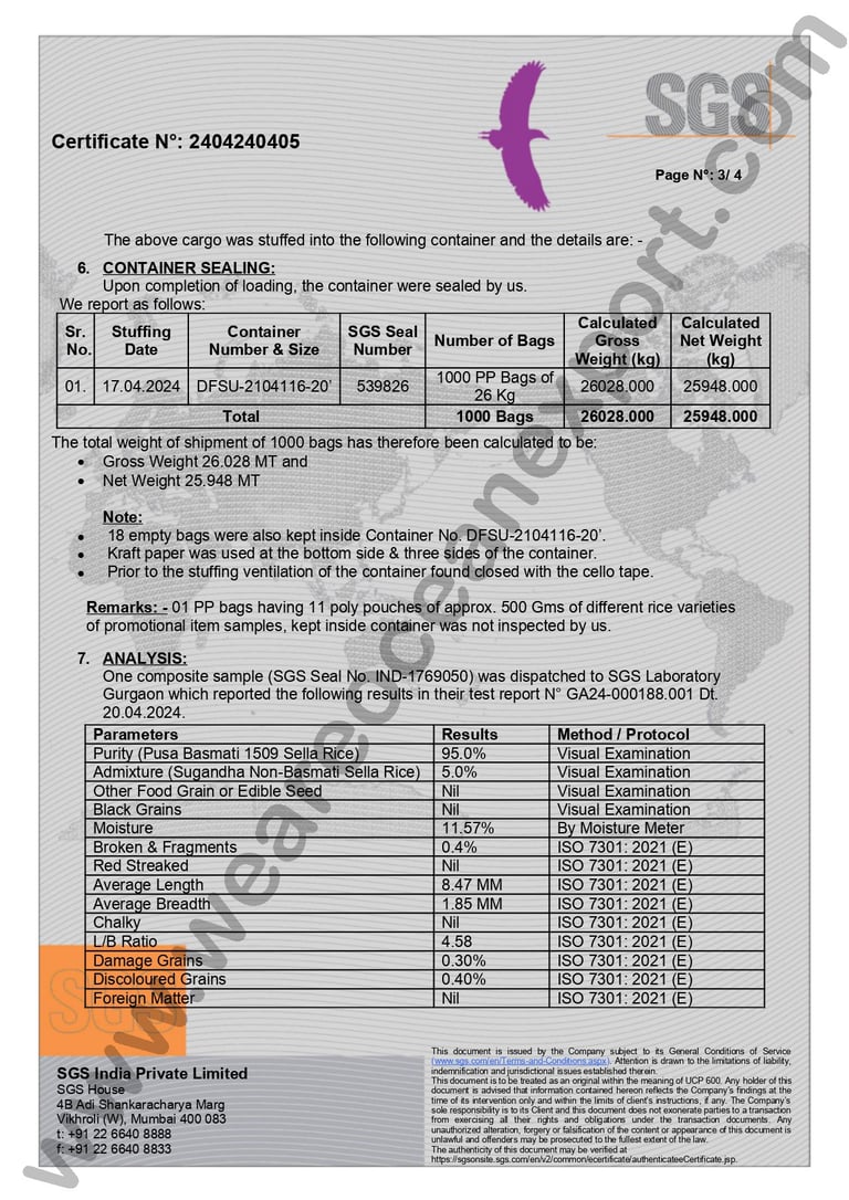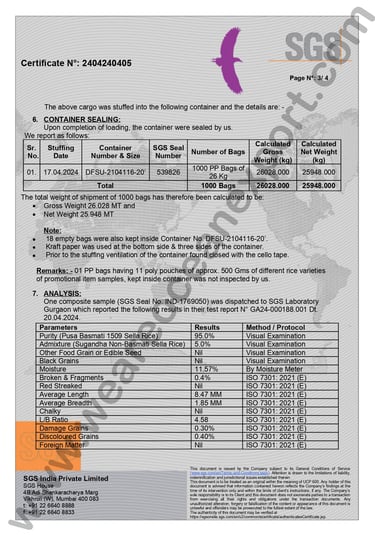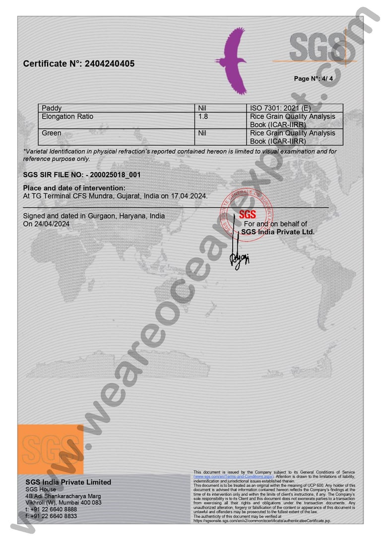 SGS-Certified Basmati Rice – Inspection Report, Mundra Port, Gujarat
